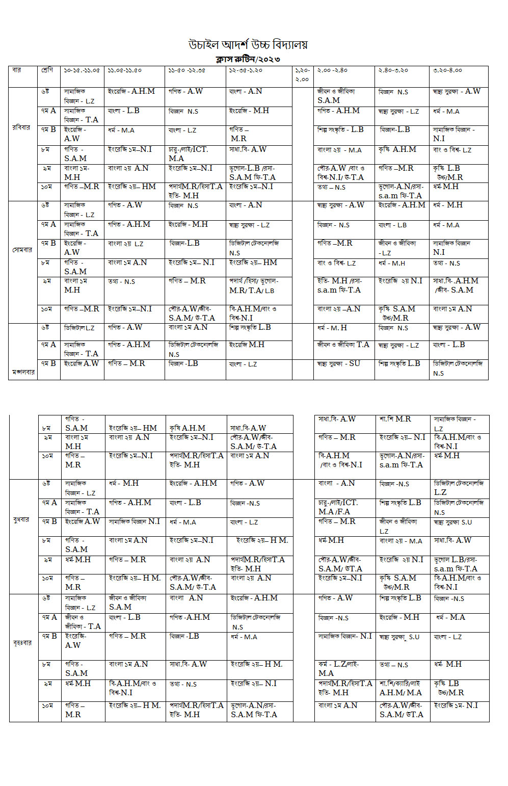 উচাইল আদর্শ উচ্চ বিদ্যালয় ক্লাস রুটিন ২০২৩