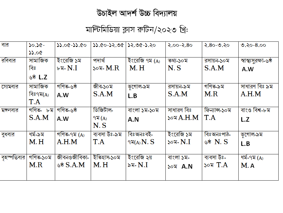 উচাইল আদর্শ উচ্চ বিদ্যালয় মাল্টিমিডিয়া ক্লাস রুটিন ২০২৩