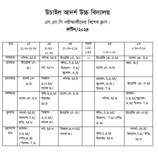 উচাইল আদর্শ উচ্চ বিদ্যালয় অতিরিক্ত ক্লাস রুটিন এস.এস.সি ২০২৪
